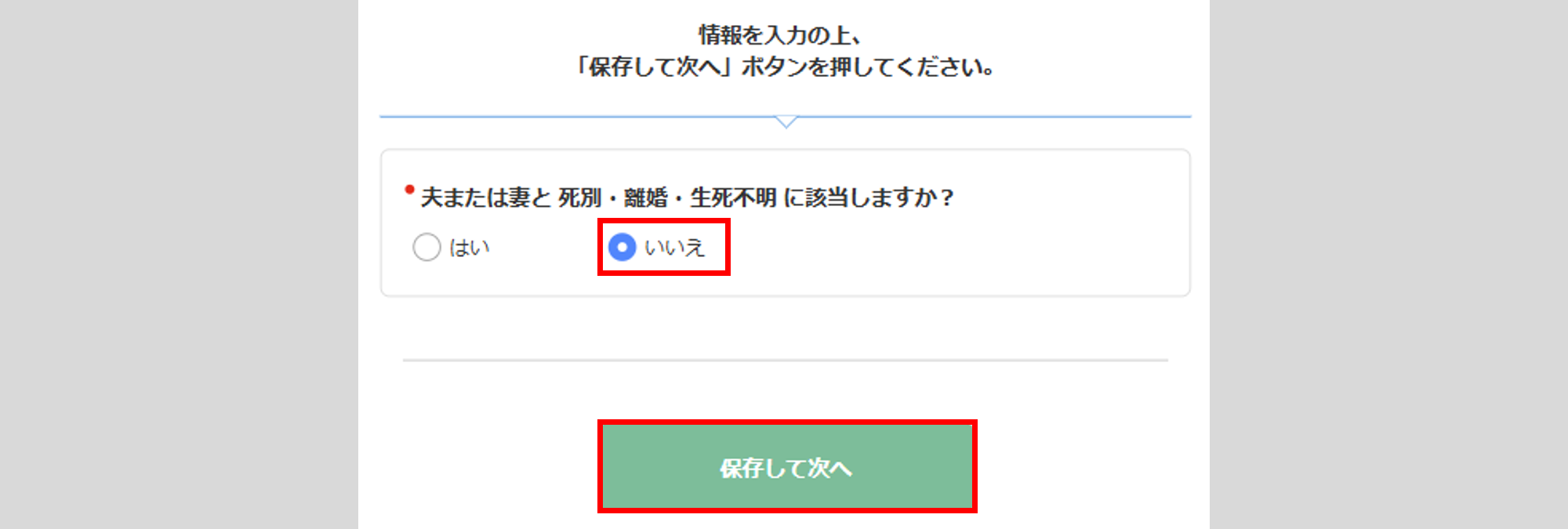 [変更あり]をクリックした場合、「夫または妻と 死別・離婚・生死不明 に該当しますか?」と表示されます。