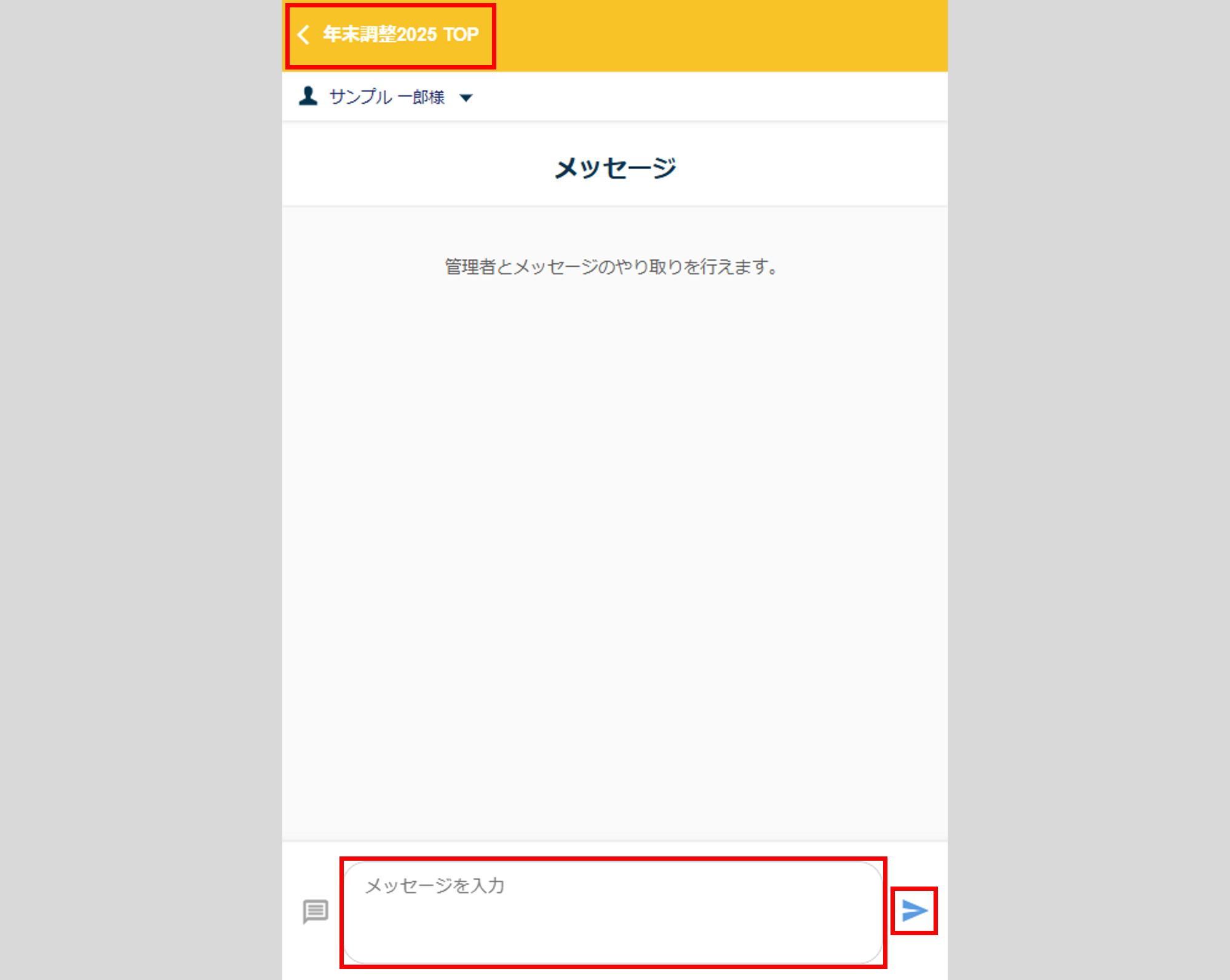 [メッセージ]をクリックすると、メッセージ機能を利用して管理者と連絡をとることができます。