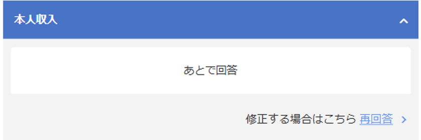 質問に「あとで回答」を選択している場合、下図が表示されます。