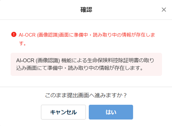 ※内容に問題がなければ、[はい]をクリックして、提出画面へ進むこともできます。