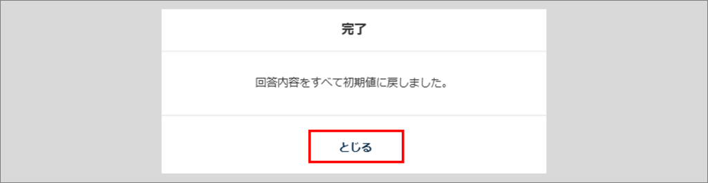 「完了」ウィンドウが表示されたら、回答内容の初期化は完了です。