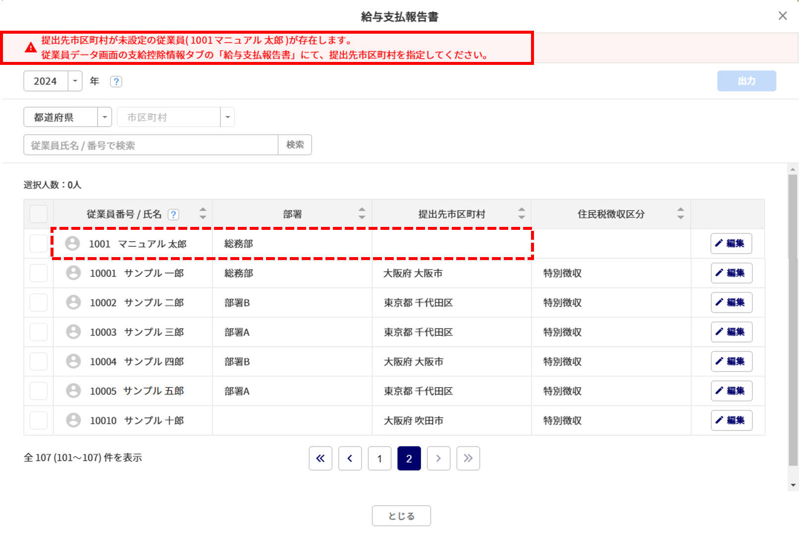 1553|【給与計算】エラー:提出先市町村が未設定の従業員(XXXX)が存在します。