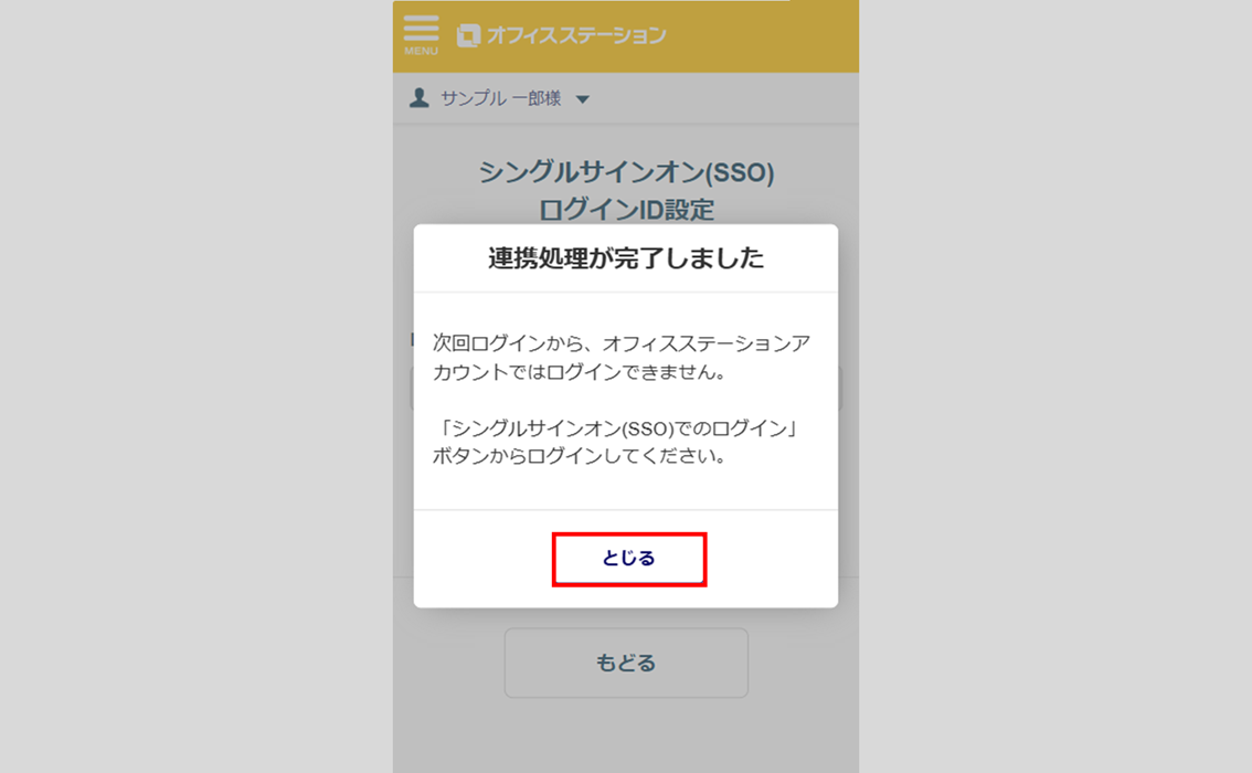 [とじる]をクリックすると、SSOログインIDの登録は完了です。
