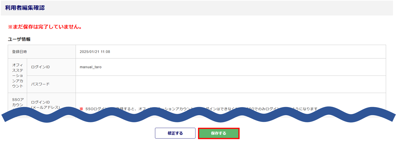 「SSOログインID」列に「ログインIDを登録する」と表示されたら、操作は完了です。