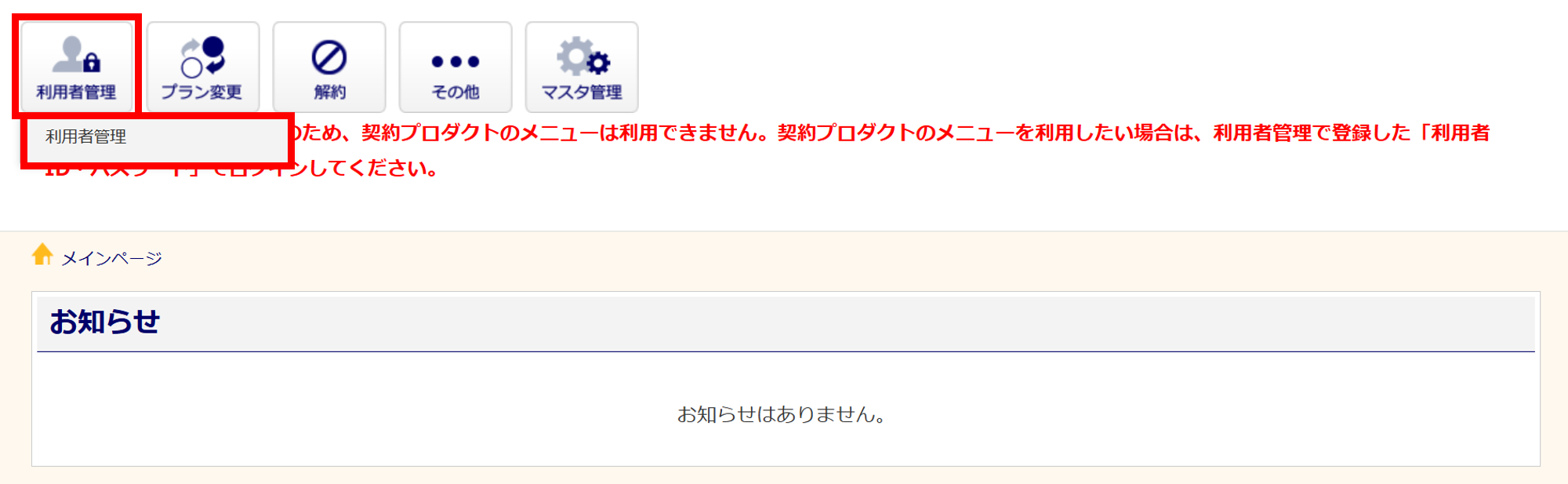 ※初期ログインIDとパスワードがわかる場合、本マニュアル内「自身の他に管理者権限の利用者がいない場合」の操