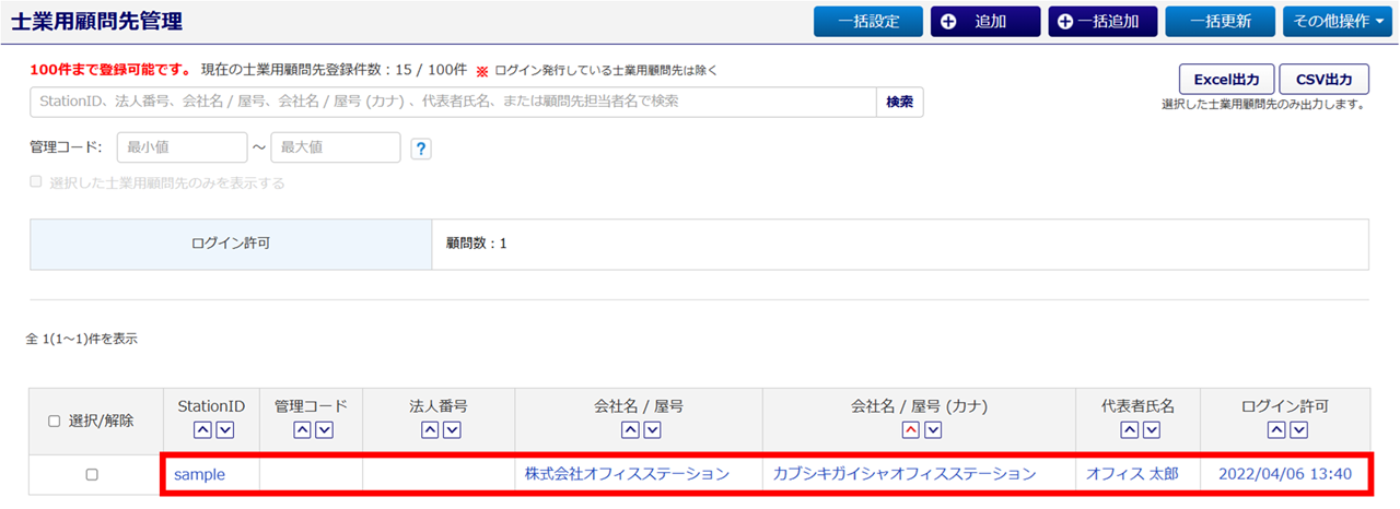 [マスタ管理]>[士業用顧問先管理]をクリックします。