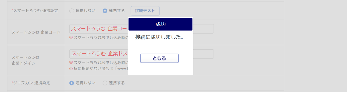 [接続テスト]をクリックし、接続に問題がないか確認します。
