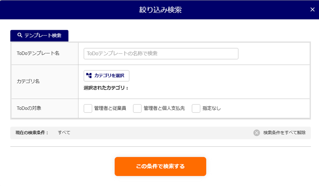 [絞り込み検索]をクリックすると、「ToDoテンプレート名」「カテゴリ名」「ToDoの対象」を絞り込んで検索できます。