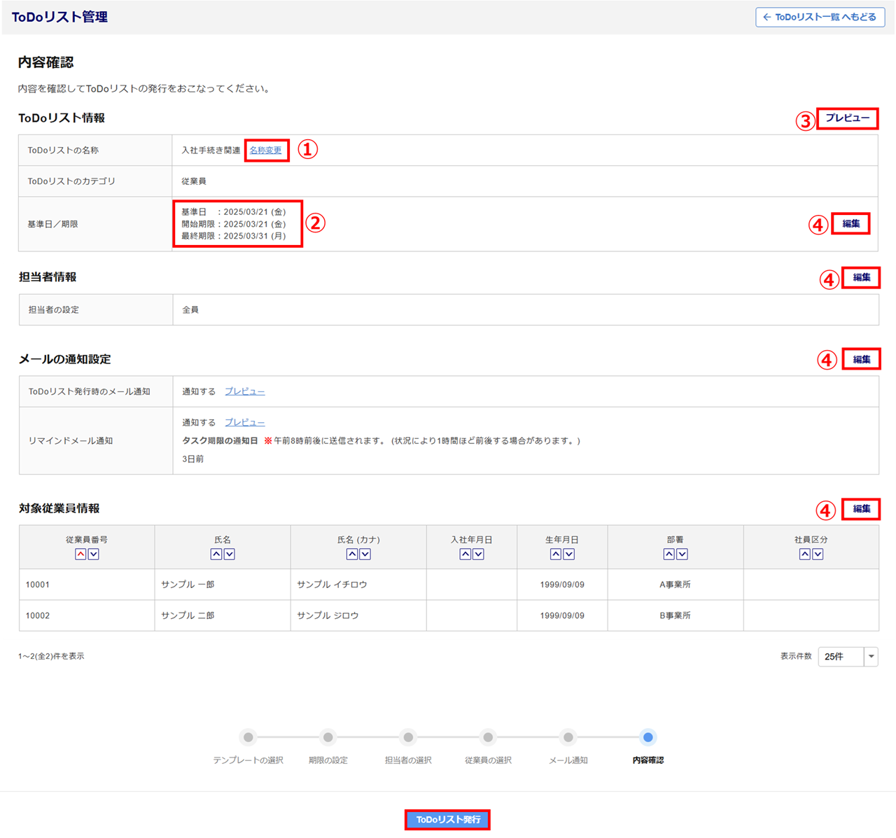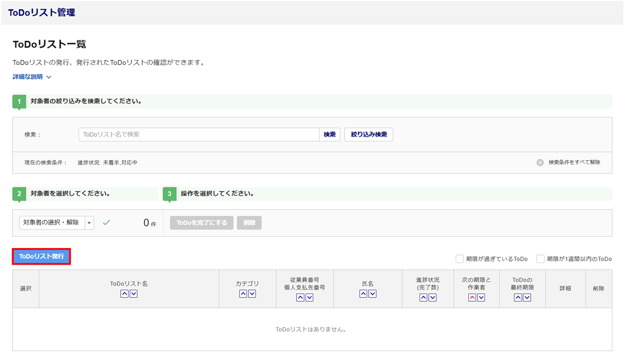 内容を確認し、問題なければ[ToDoリスト発行]をクリックします。