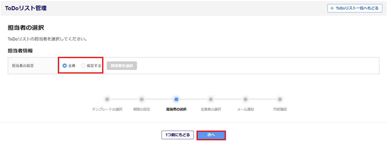 担当者を設定し、[次へ]をクリックします。