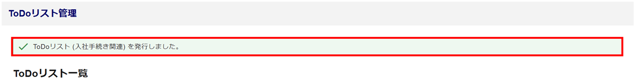 「ToDoリスト(ToDoリストの名称)を発行しました。」と表示されたら、ToDoリスト発行は完了です。