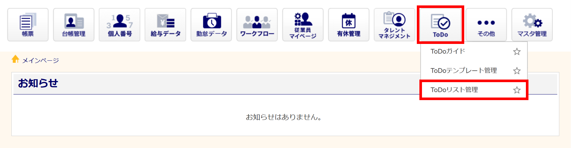 [ToDo]>[ToDoリスト管理]をクリックします。