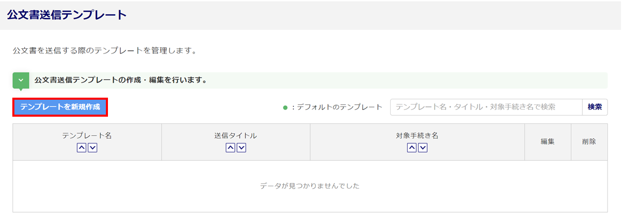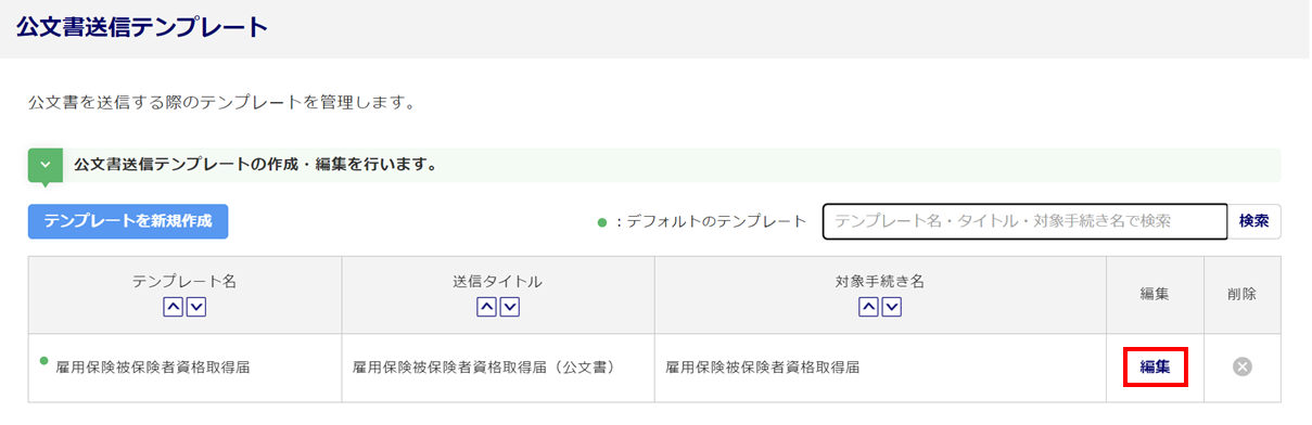に緑色丸印があるテンプレートは、対象手続に対して初期設定として登録されているテンプレートです。