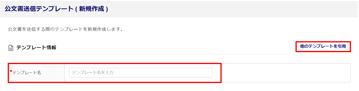 ※下図は、「公文書送信テンプレート」画面です。「公文書送信テンプレート」画面にて、「テンプレート名」の前