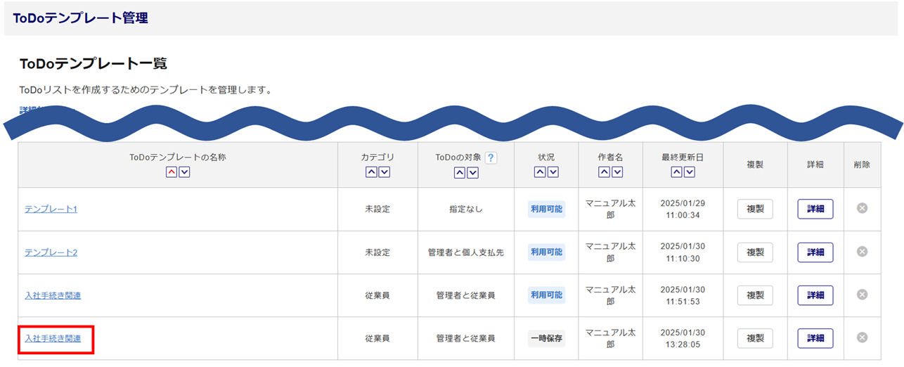 対象の[ToDoテンプレートの名称]をクリックします。
