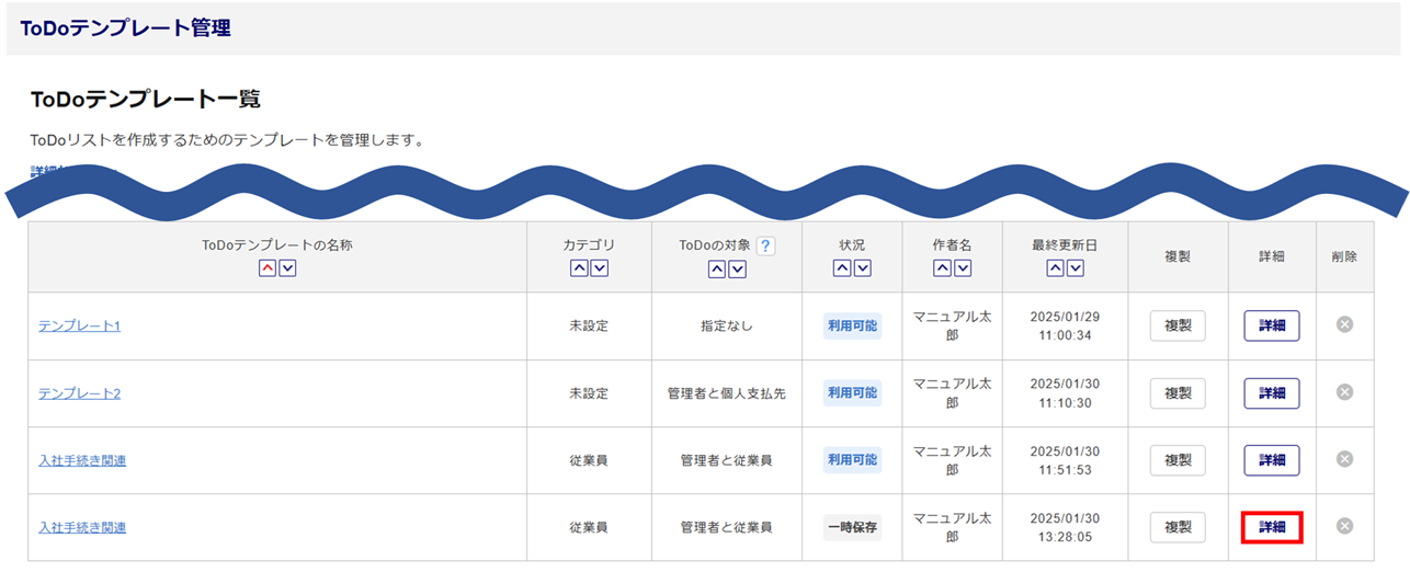 対象のToDoテンプレートの[詳細]をクリックします。