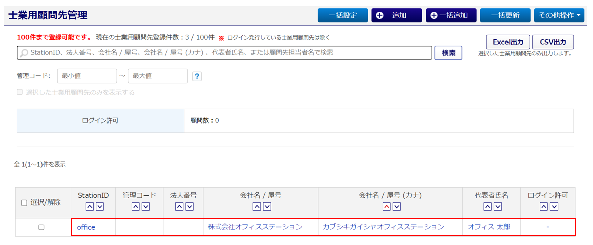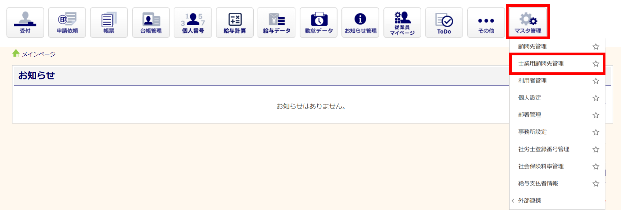 [マスタ管理]>[士業用顧問先管理]をクリックします。