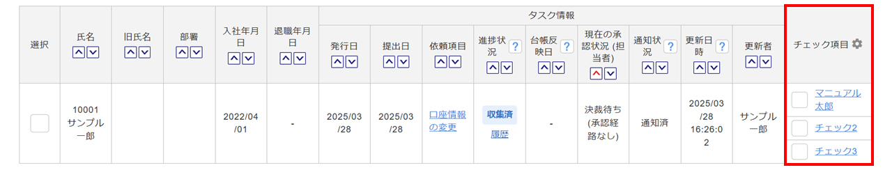 例)チェック1→マニュアル太郎(ログイン者の氏名)