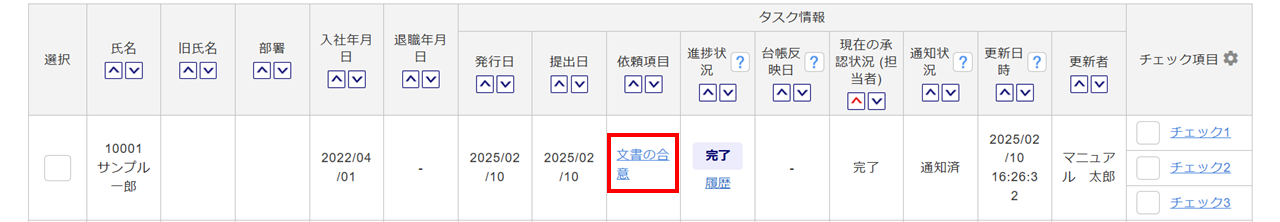 ・完了処理をおこなうと、従業員台帳に合意文書が反映されます。
