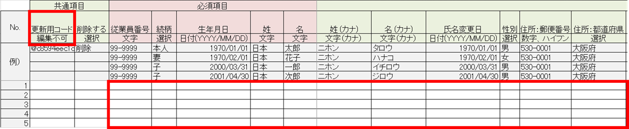 ※「更新用コード」列は空白のまま保存してください。