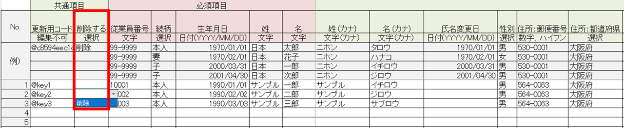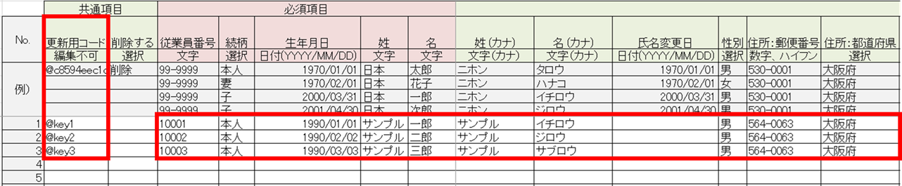 ※「更新用コード」列は、変更や削除をしないでください。