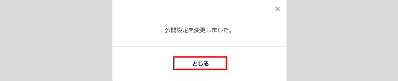 「公開設定を変更しました。」と表示されると、設定完了です。