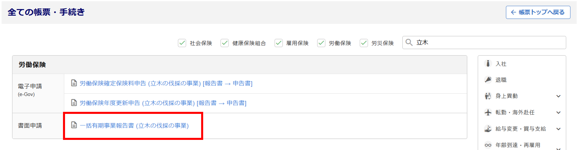 「一括有期事業報告書 (立木の伐採の事業)」をクリックします。