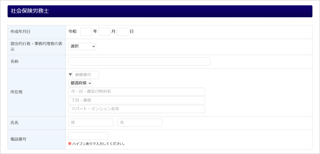 「事業主」の下部に「社会保険労務士」が表示されます。