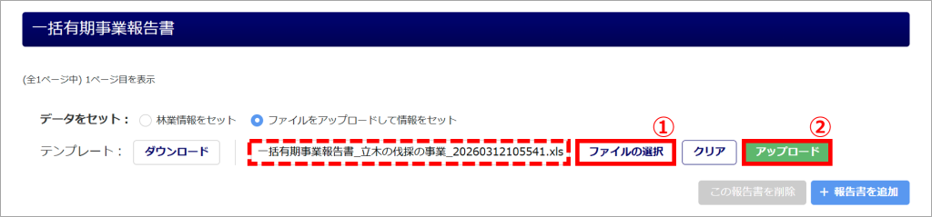 「林業情報をセット」を選択して、本マニュアル内「一括有期事業報告書の作成」以降の操作をおこなってく