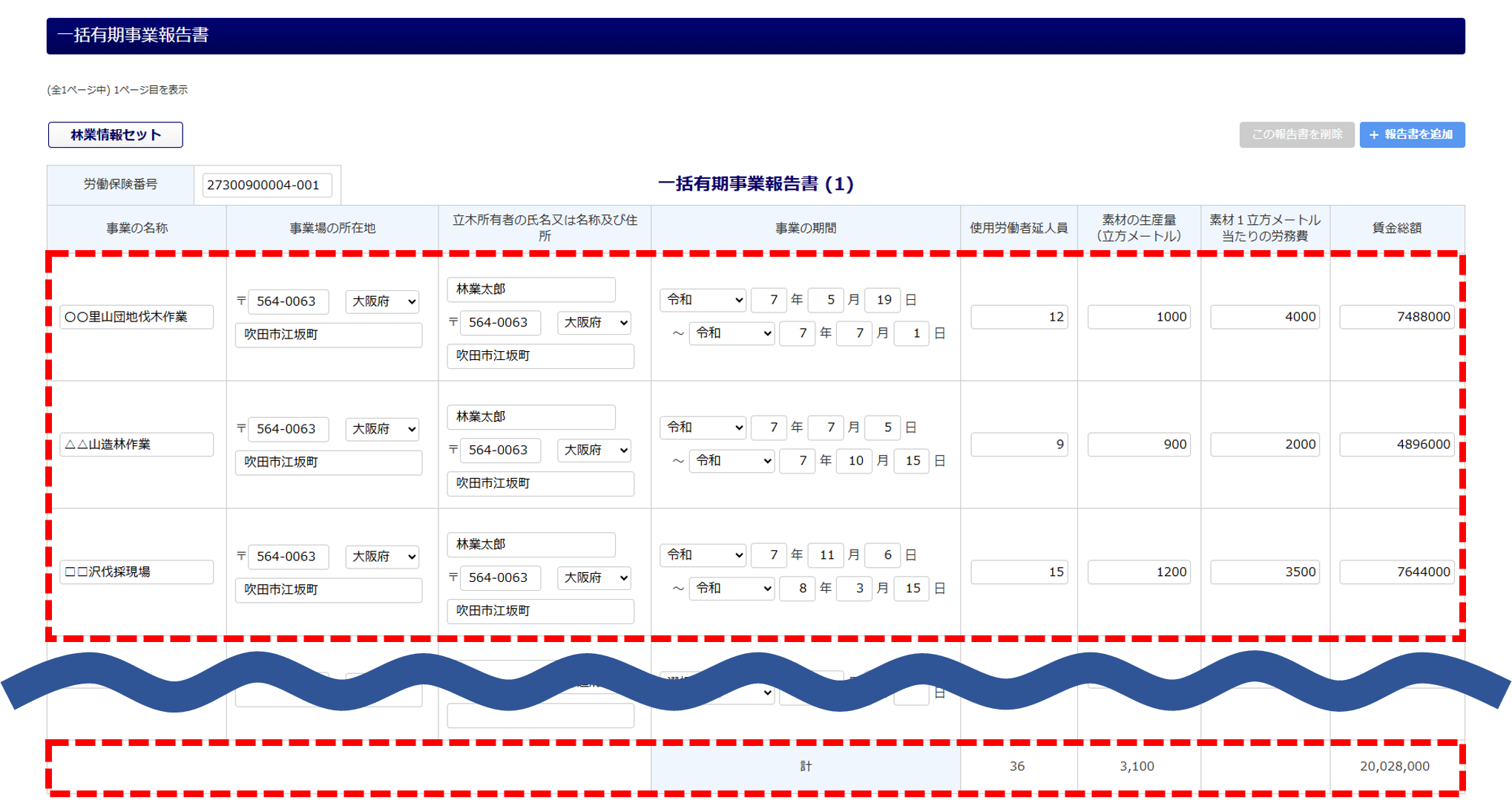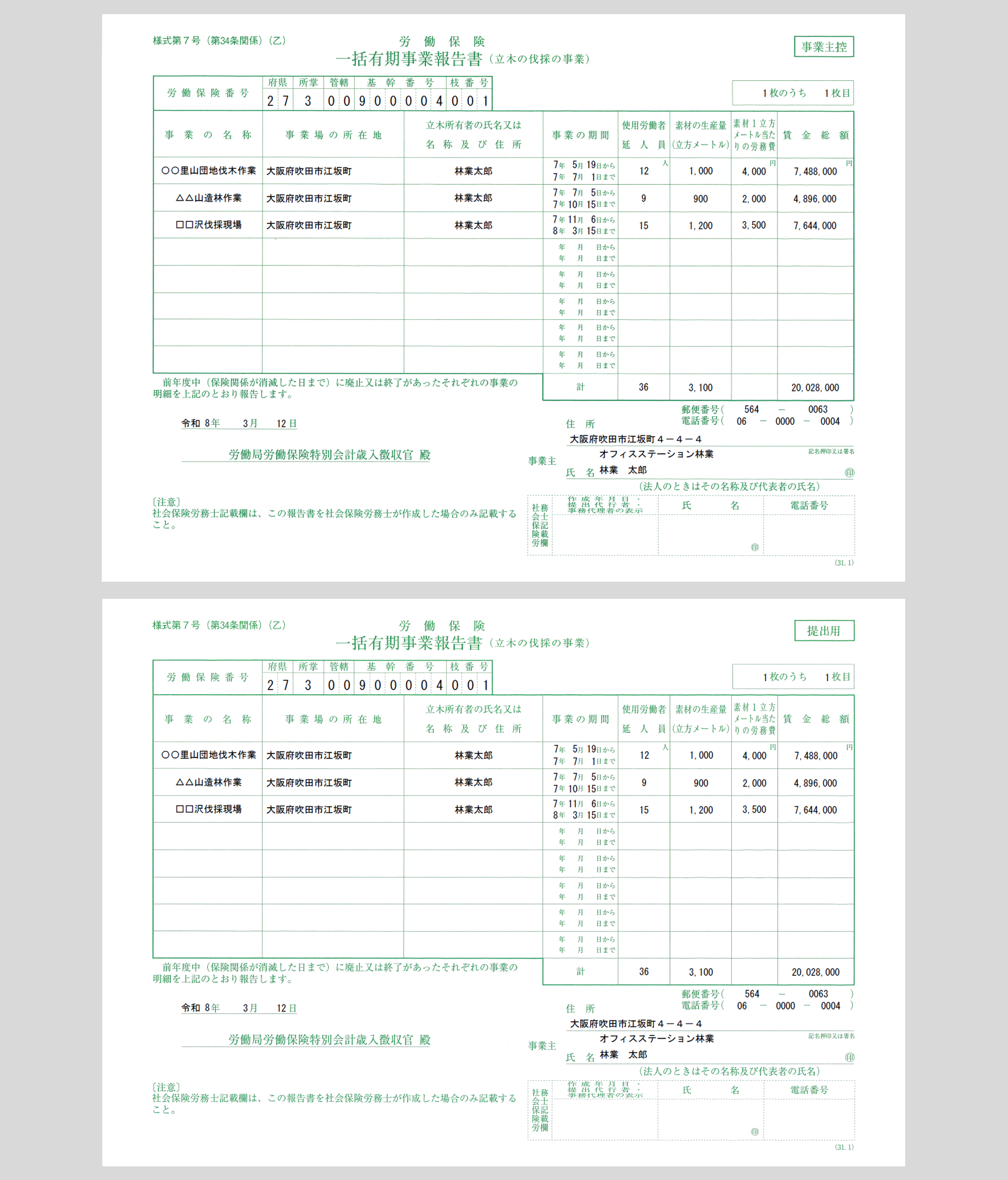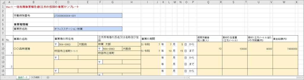 以上で、「一括有期事業報告書 (立木の伐採の事業)」の作成は完了です。