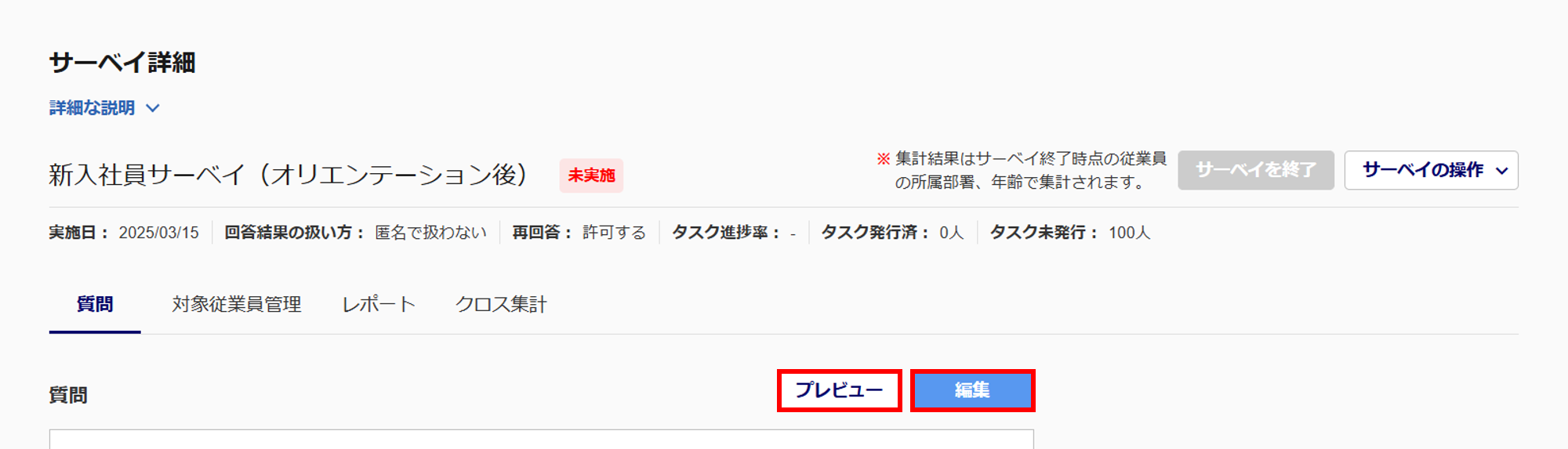 サーベイの状況が「未実施」の場合のみ、編集することができます。