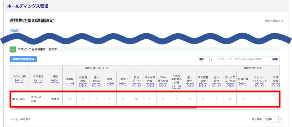 ※複数名、ホールディングスの利用者が登録されている場合でも、一律で「ホールディングス利用者」と