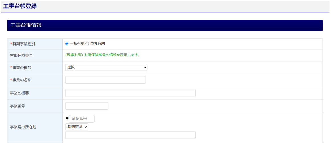 ※「有期事業種別」は、一括有期事業が適用される場合、「一括有期」を選択してください。