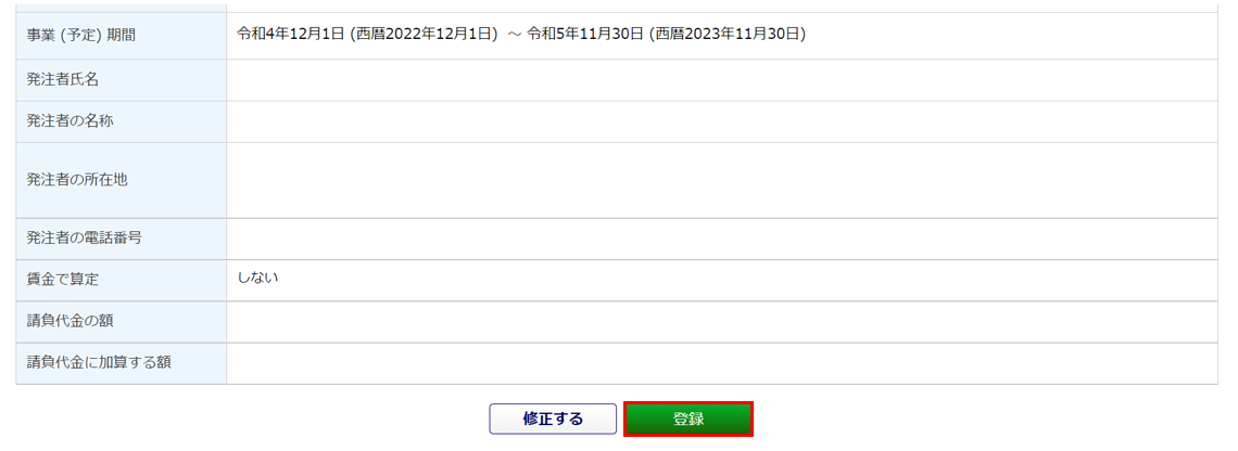 ※登録済みの工事台帳の編集の場合、[保存]をクリックします。