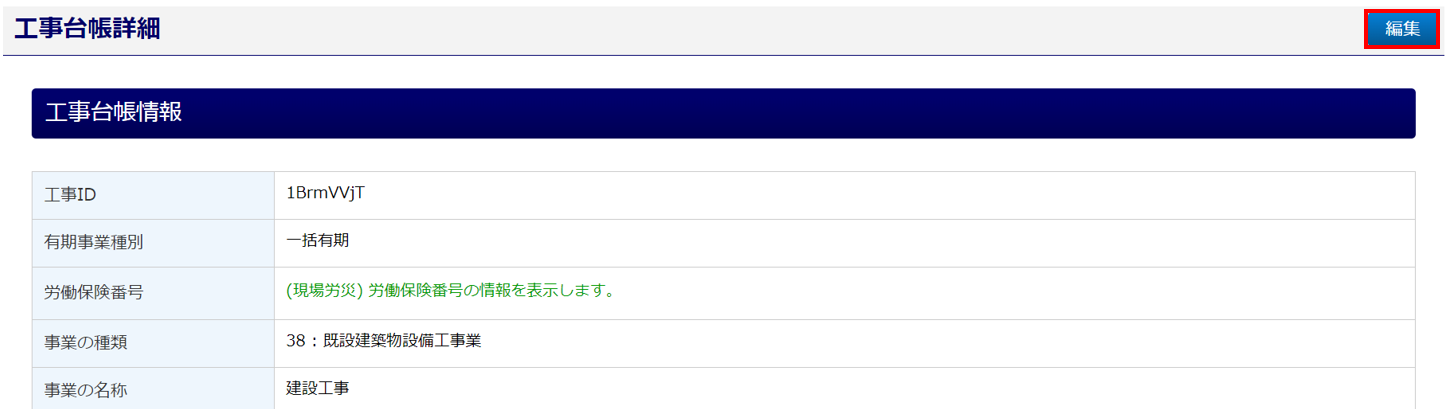 登録済みの工事台帳を編集する場合は、[編集]をクリックします。