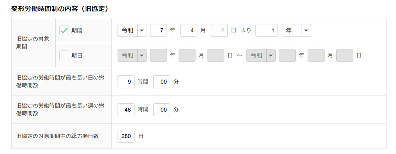 ※「協定の当事者(労働者の過半数を代表する者の場合)の選出方法」も入力が必要です。