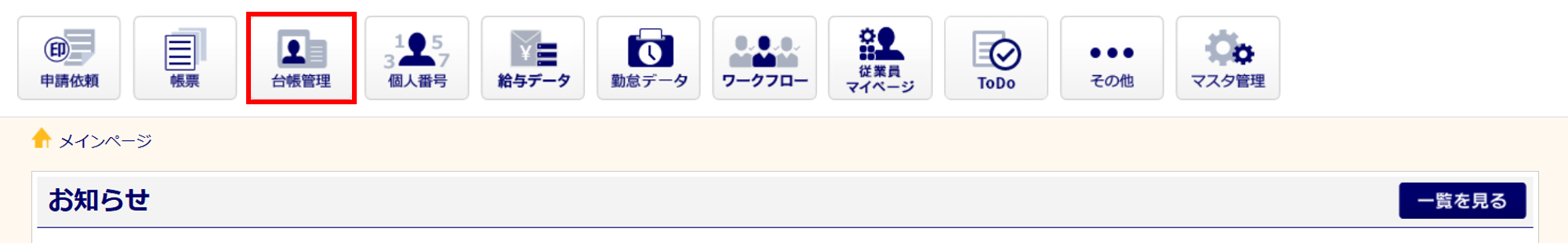 [台帳管理]をクリックします。