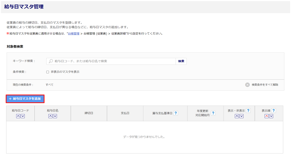 [給与日マスタを追加]をクリックします。