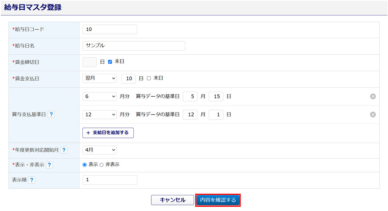 以上で、給与日マスタの登録は完了です。