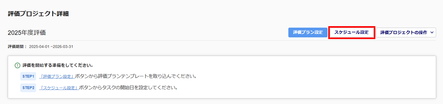 タスクのスケジュールが未設定の場合、評価の開始をおこなうことができません。