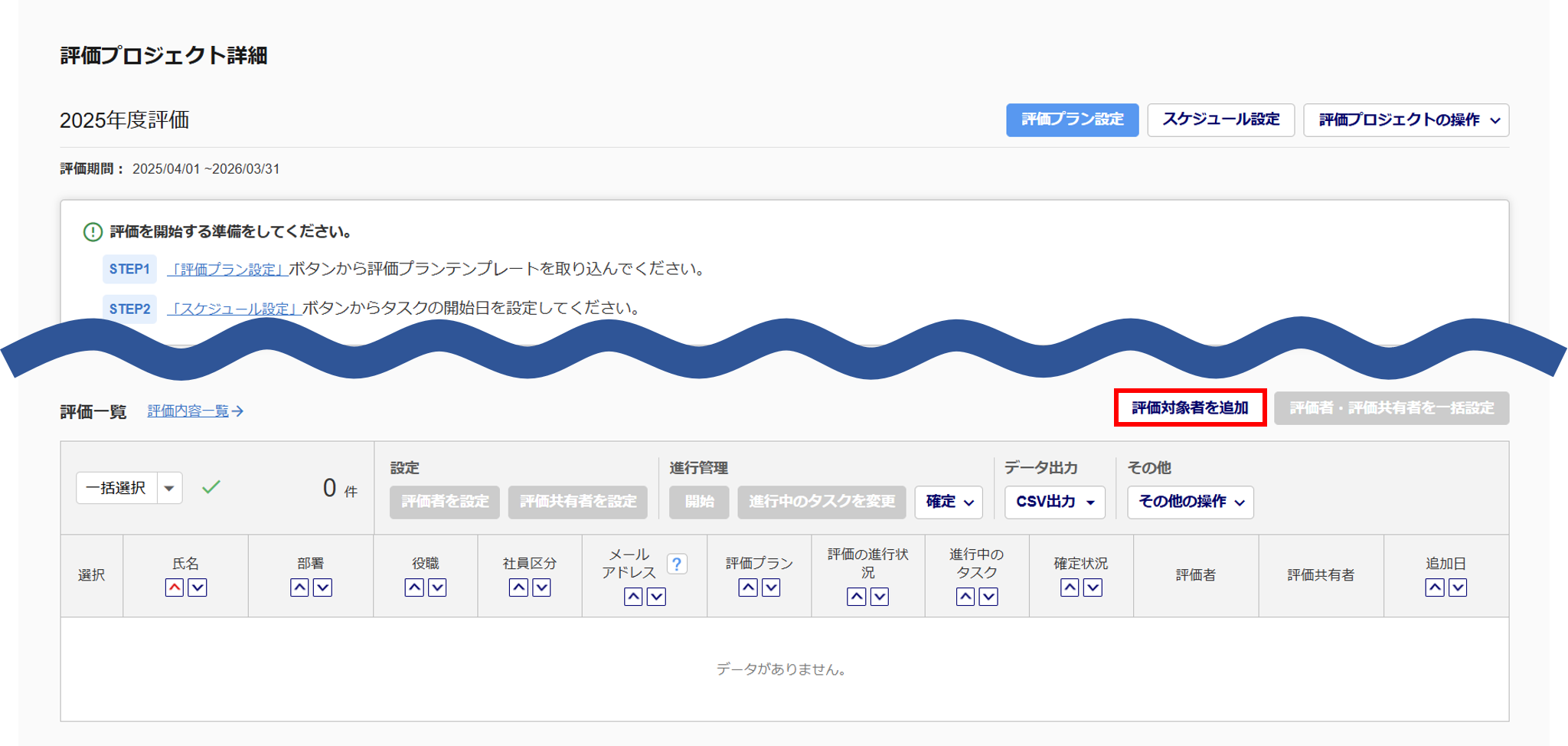 ※「閲覧・編集権限設定」が未設定の状態では、評価を開始することができません。