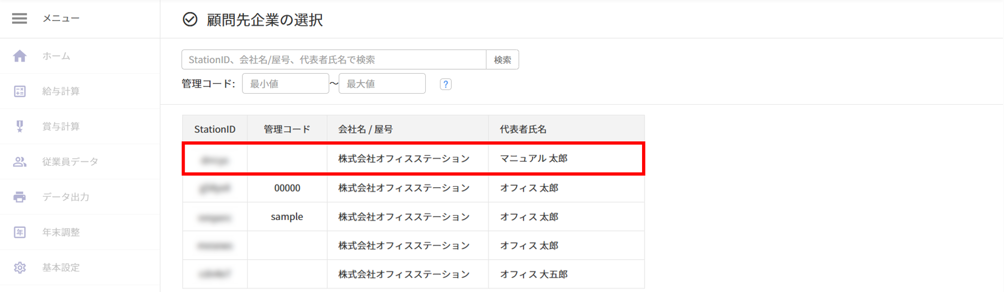 オフィスステーション本体の設定方法、士業用顧問先管理の登録方法については以下のマニュアルをご参照ください。