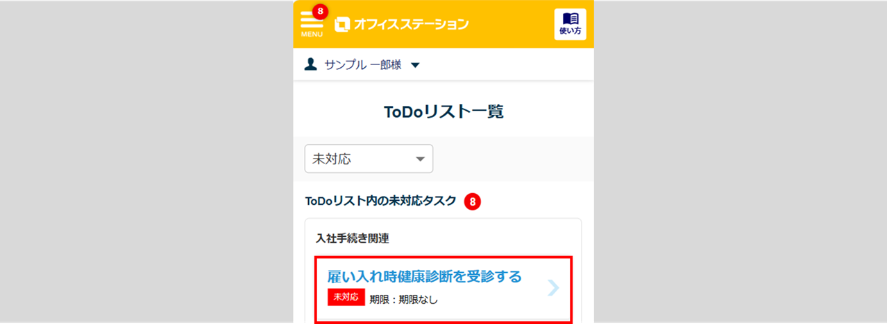 ログイン後、「ToDoリスト内の未完了タスク」に表示されているタスクをクリックします。