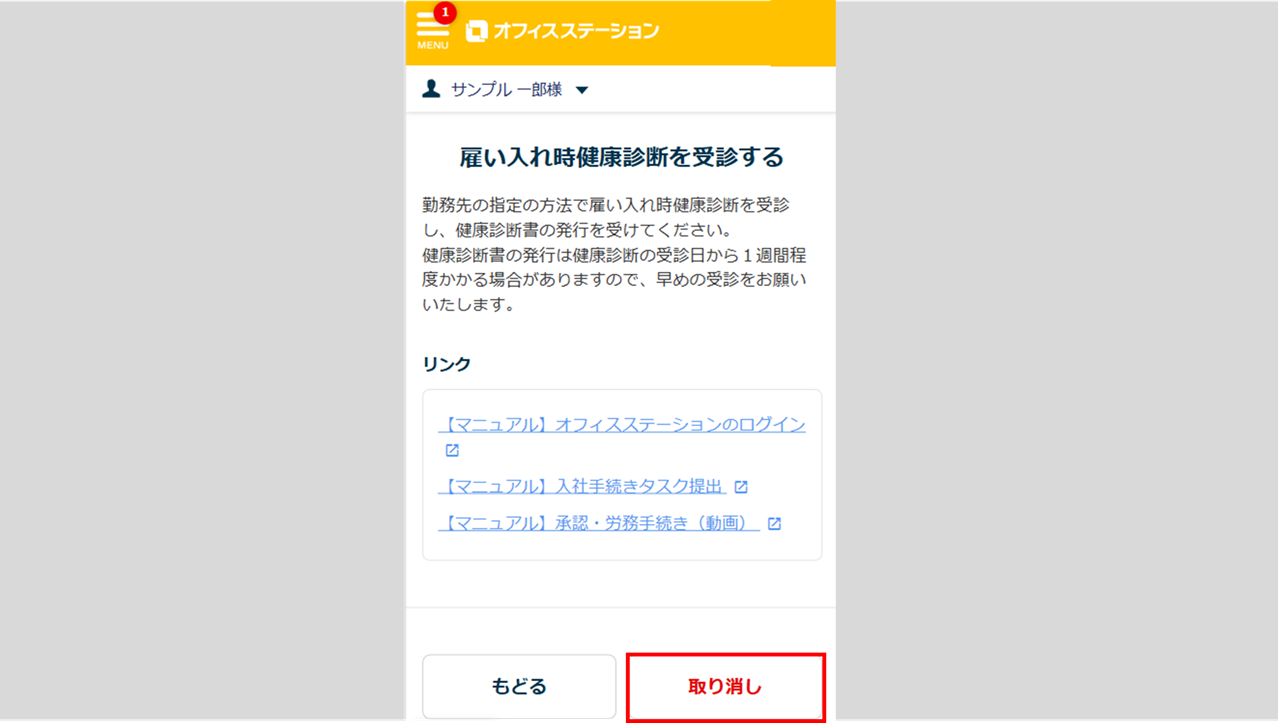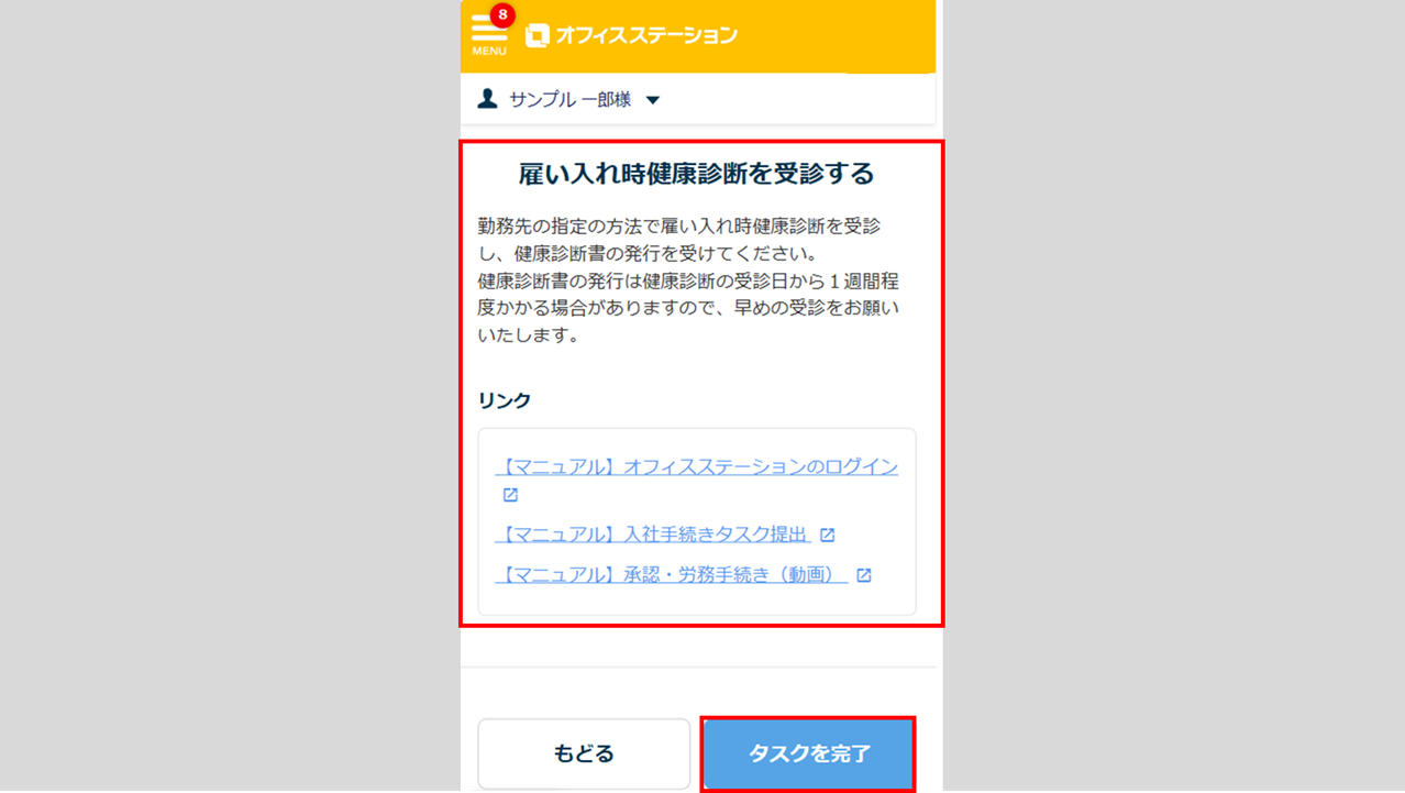内容やリンクを確認し、完了したら[タスクを完了]をクリックします。