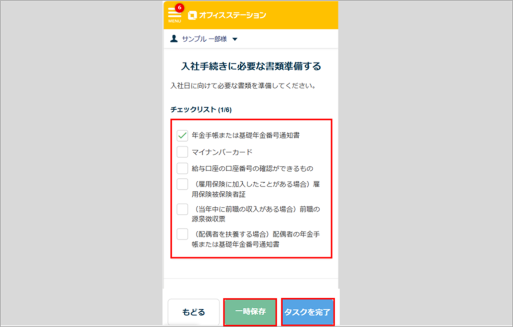 一部のみチェックし、[一時保存]をクリックすることも可能です。