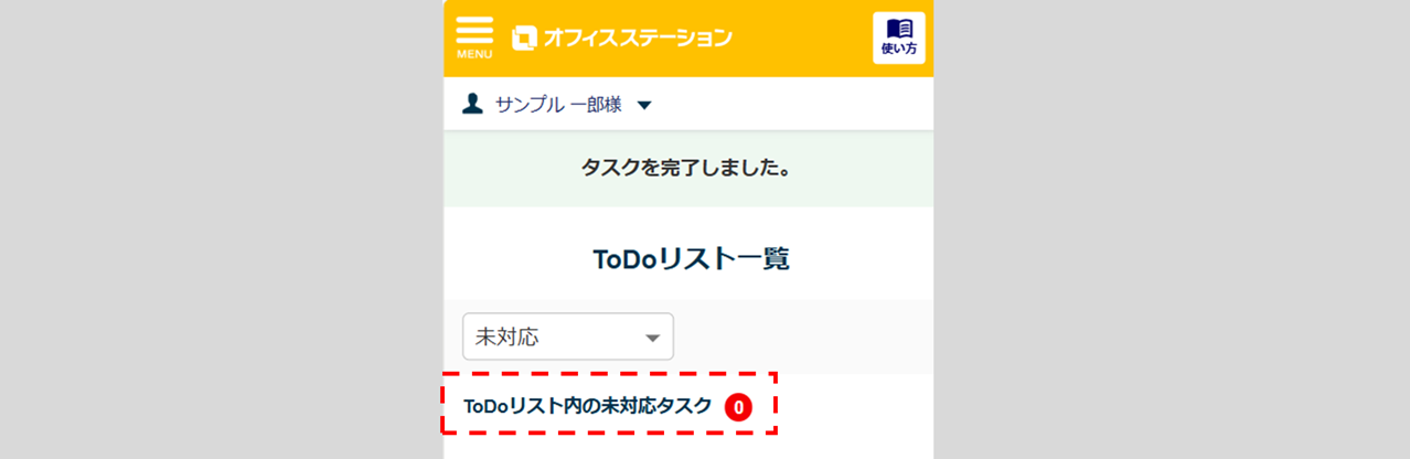 すべてのタスクを完了にし、「ToDoリスト内の未対応タスク」が「0」になれば、操作は完了です。