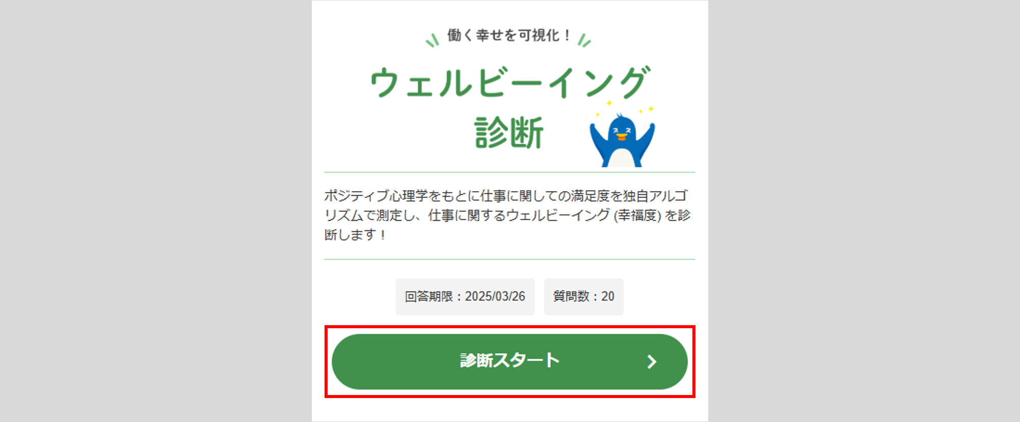 [ウェルビーイング診断]をクリックします。