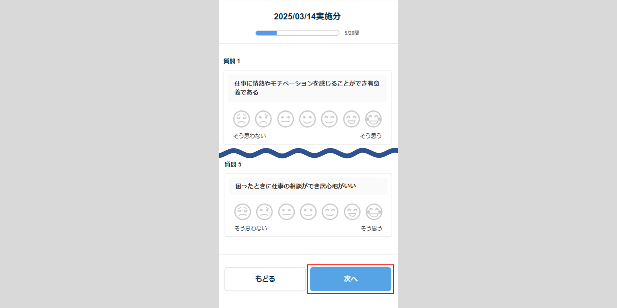 1ページに5問の質問が表示されます。