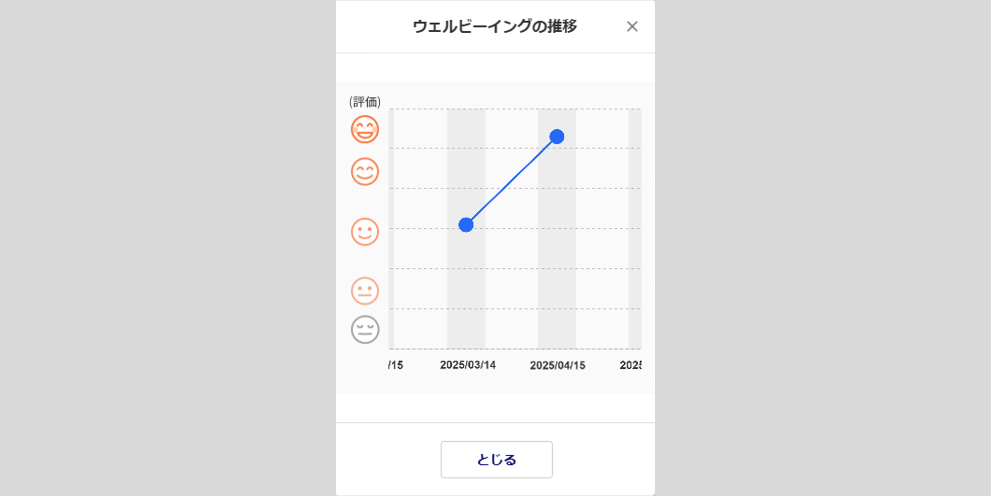 [ウェルビーイングの推移を確認]をクリックすると、診断結果の推移などを確認できます。