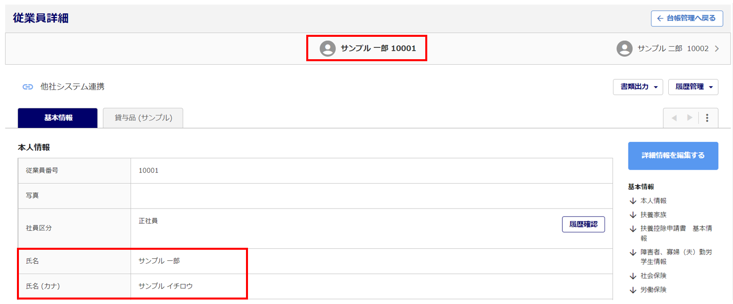 従業員の氏名は、「従業員台帳一括編集」を使用することで複数名をまとめて変更することができます。